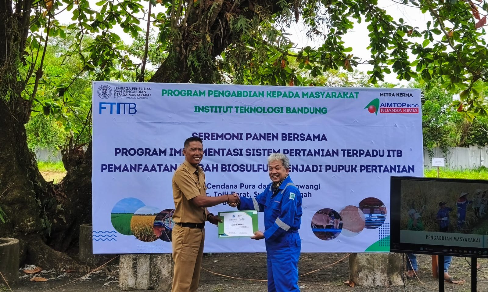 Selain menyosialisasikan teknologi, kedua pihak juga turut melakukan panen raya bersama masyarakat sebagai bukti keberhasilan penggunaan pupuk hasil olahan kohe yang dikembangkan oleh tim ITB. Kegiatan ini dihadiri oleh aparat setempat, Kapolsek, Danramil, jajaran ITB, PT Aimtopindo, serta para petani dan warga.