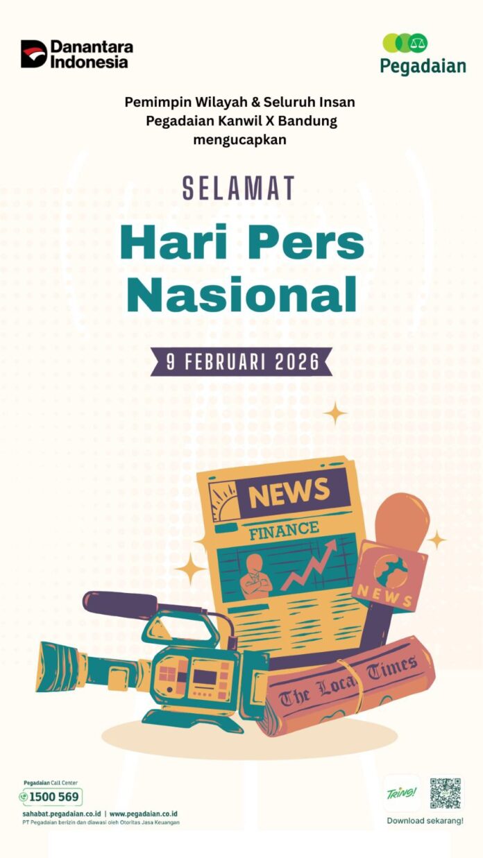 “Atas nama manajemen dan seluruh Insan Pegadaian Kanwil X Jawa Barat, kami mengucapkan Selamat Hari Pers Nasional 2026 kepada rekan-rekan Pokja Liputan Pegadaian dan seluruh insan pers di Indonesia. Terima kasih atas kerja sama, dedikasi, dan kontribusi positif dalam menyebarkan informasi yang membangun,” ujar Eko Supriyanto.
